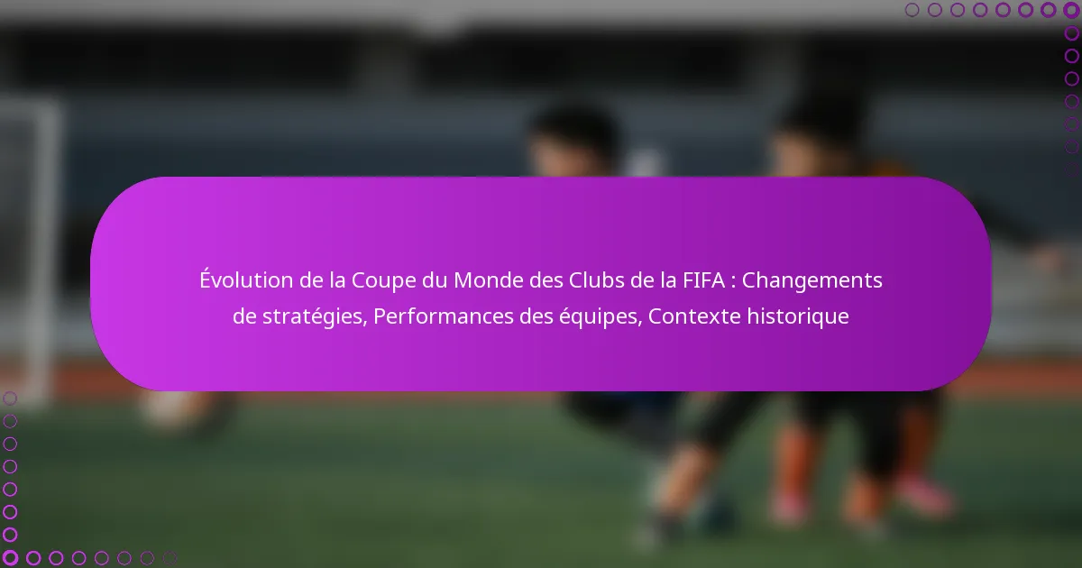 Les stratégies dans la Coupe du Monde des Clubs de la FIFA ont évolué de manière significative au fil des ans, reflétant les changements dans les formations d’équipe, les styles d’entraînement et l’intégration de la technologie. Ces développements ont influencé la manière dont les équipes se produisent sur la scène mondiale, avec des degrés de succès et de lutte variés parmi les participants.