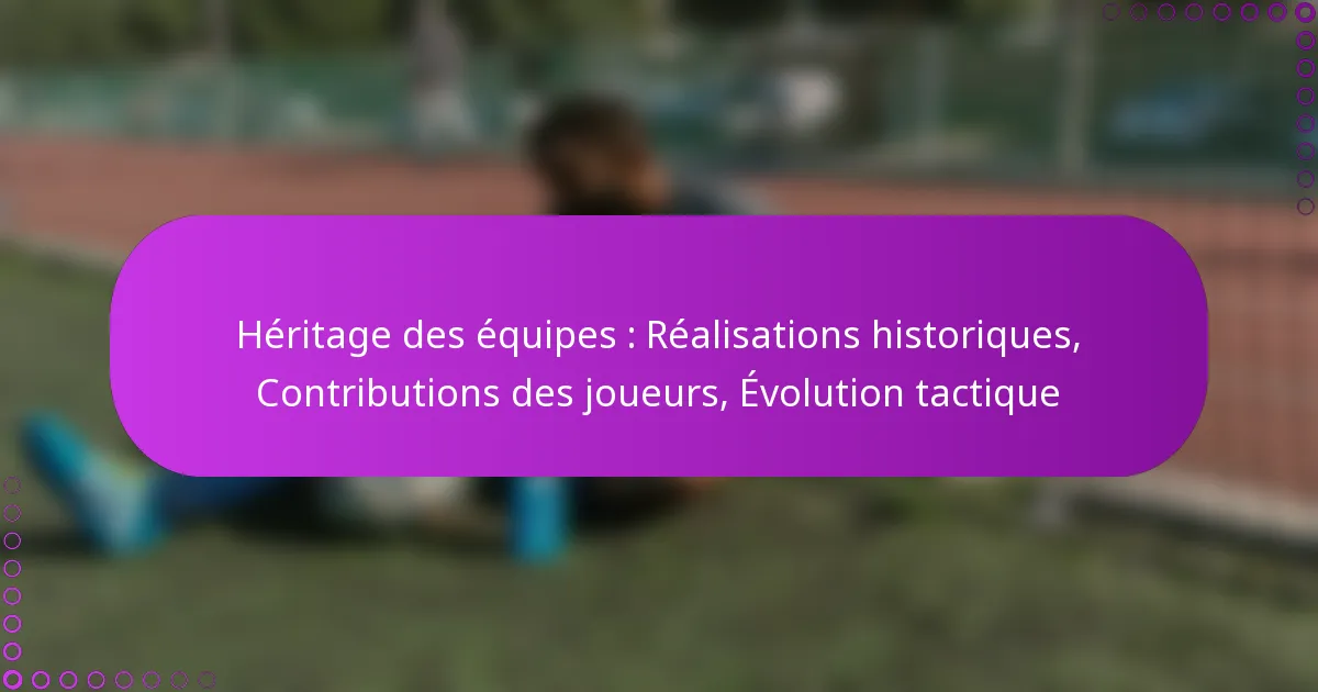 L’héritage de l’équipe est marqué par une série de réalisations historiques qui ont défini son identité et influencé le sport. Des joueurs clés ont apporté des contributions significatives, laissant une empreinte indélébile à travers leurs performances et leurs innovations tactiques. De plus, l’évolution des tactiques de l’équipe a façonné son approche compétitive, reflétant ses valeurs fondamentales et ses forces au fil des ans.