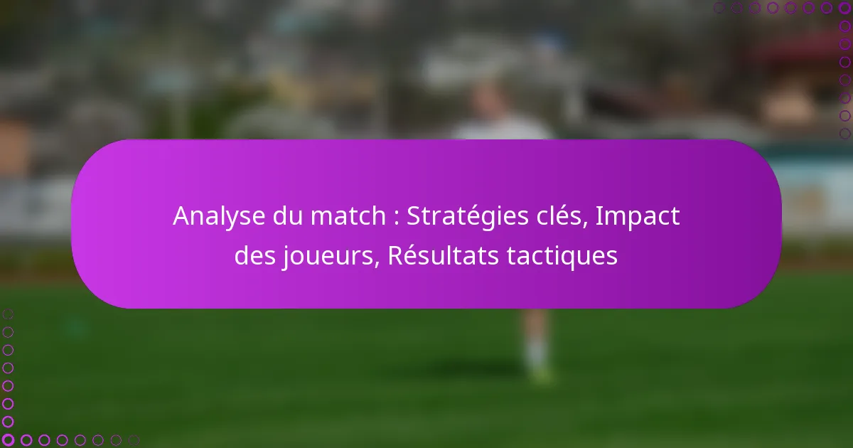 Analyse du match : Stratégies clés, Impact des joueurs, Résultats tactiques