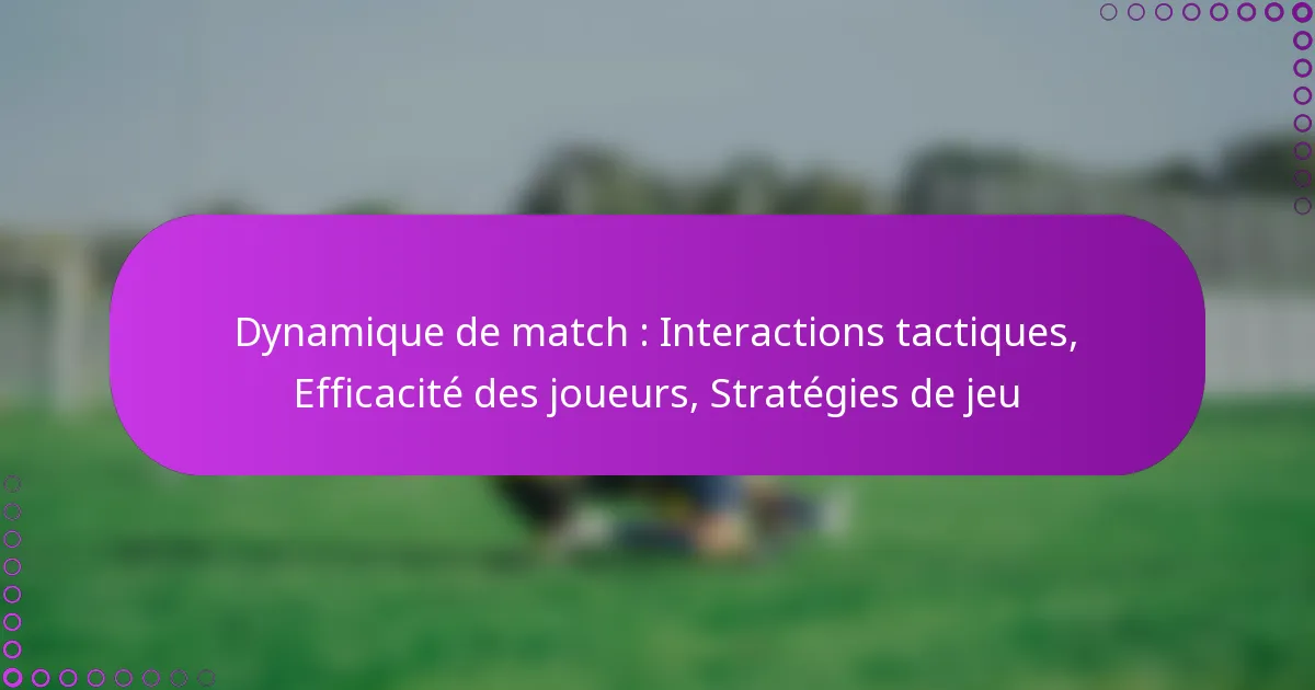 Dynamique de match : Interactions tactiques, Efficacité des joueurs, Stratégies de jeu