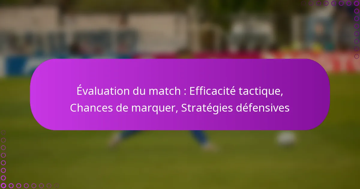 L’évaluation des matchs est un processus critique qui examine l’efficacité tactique d’une équipe, les occasions de marquer et les stratégies défensives. En analysant la manière dont une équipe met en œuvre ses tactiques, crée des occasions de marquer et défend contre ses adversaires, nous obtenons des informations précieuses sur sa performance globale et son potentiel de succès. Comprendre ces éléments est essentiel pour évaluer les forces et les faiblesses d’une équipe pendant un match.