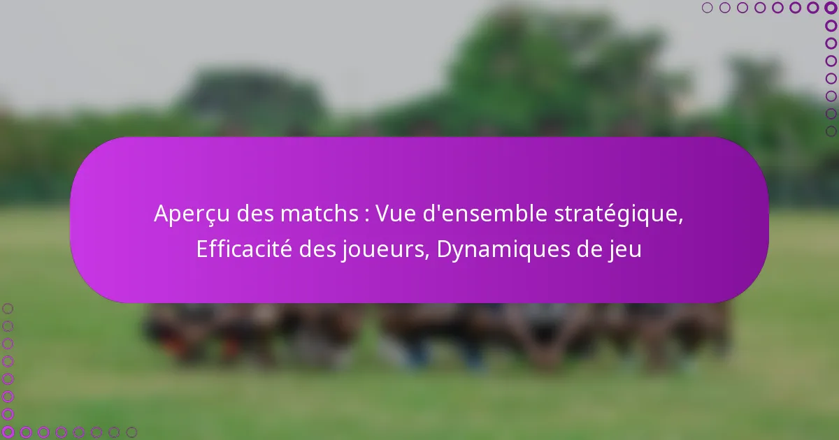 Aperçu des matchs : Vue d’ensemble stratégique, Efficacité des joueurs, Dynamiques de jeu