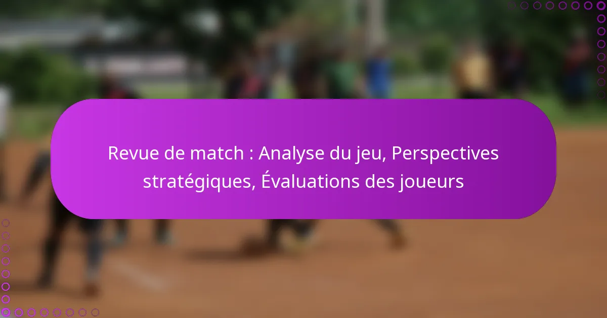 Revue de match : Analyse du jeu, Perspectives stratégiques, Évaluations des joueurs