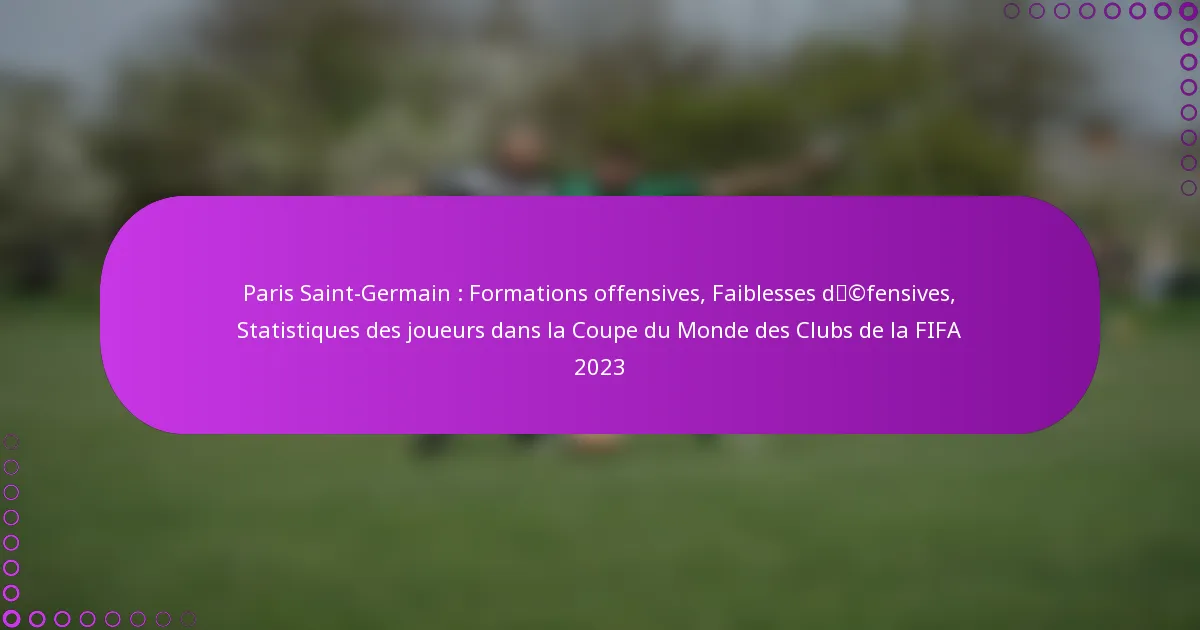 Paris Saint-Germain : Formations offensives, Faiblesses défensives, Statistiques des joueurs dans la Coupe du Monde des Clubs de la FIFA 2023