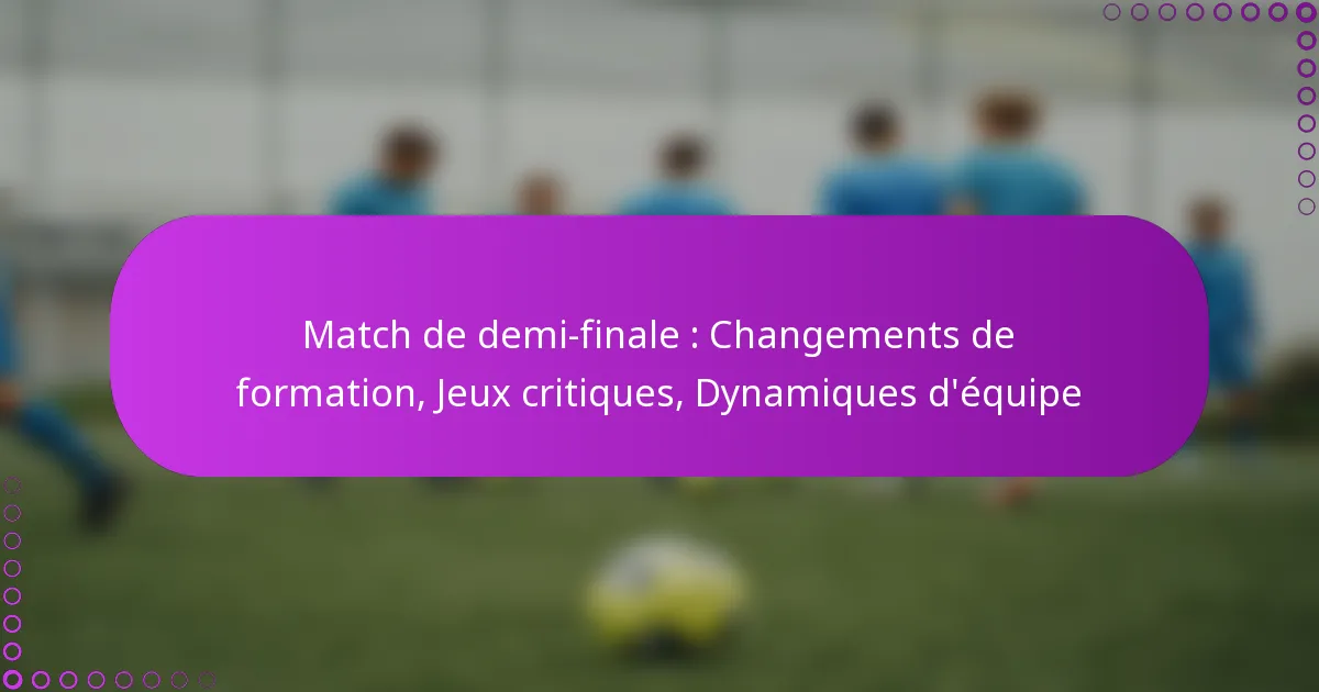 Match de demi-finale : Changements de formation, Jeux critiques, Dynamiques d’équipe